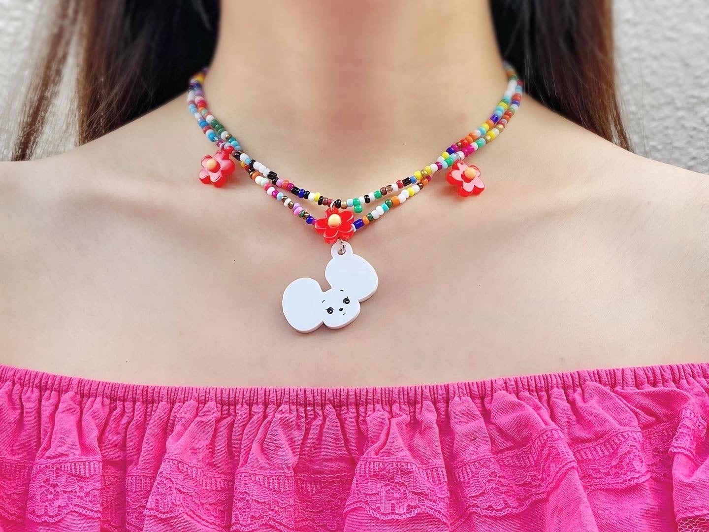 【うめだグッズ・シラタマビーズネックレス】
